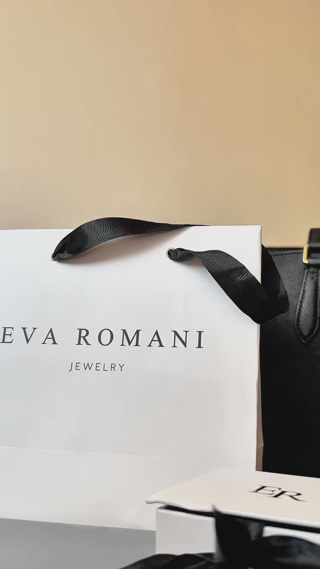 We believe that the journey of a jewelry piece begins the moment you hold the box. Each EVA ROMANI creation is thoughtfully placed in our signature gift box, finished with a satin ribbon, and accompanied by an elegant branded bag — a perfect final touch for your special choice.