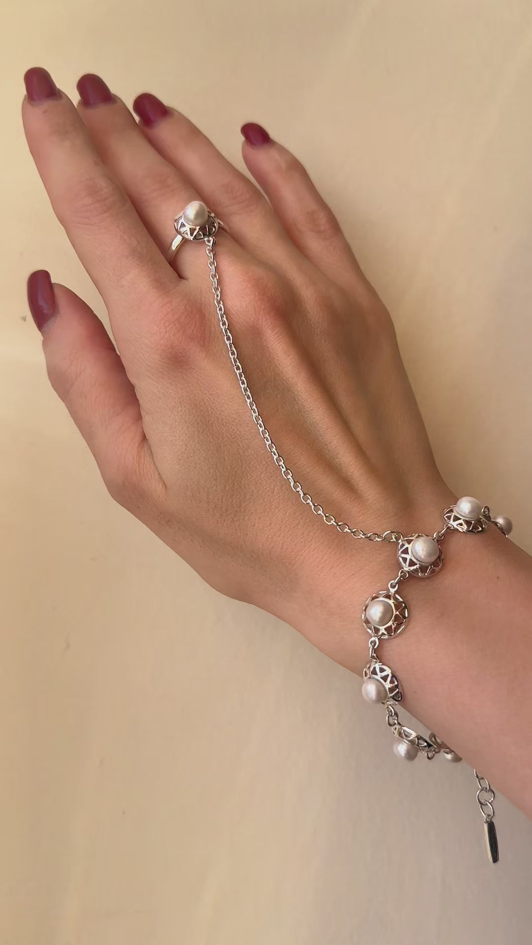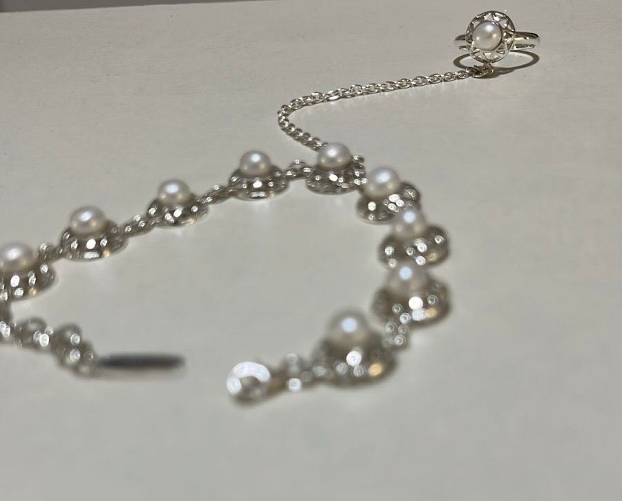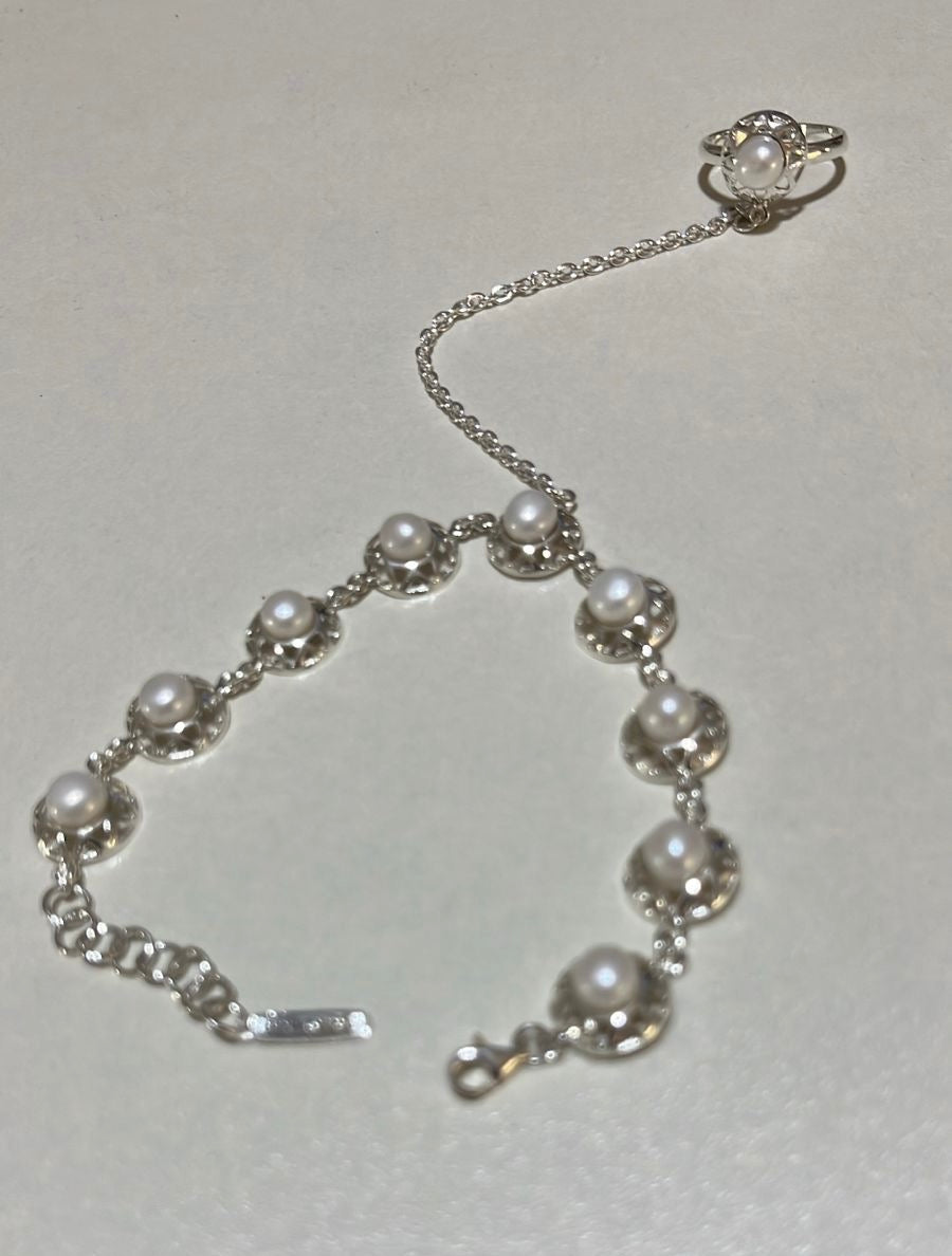 Sterling silver hand chain “Morocco” made of 925 sterling silver and cultured pearls