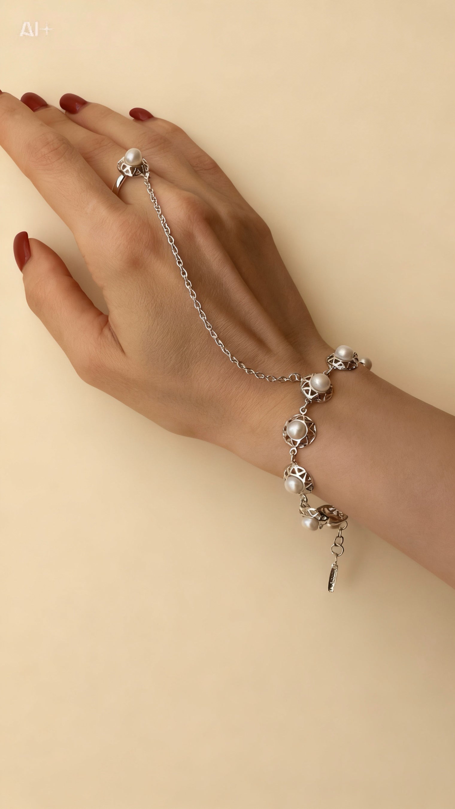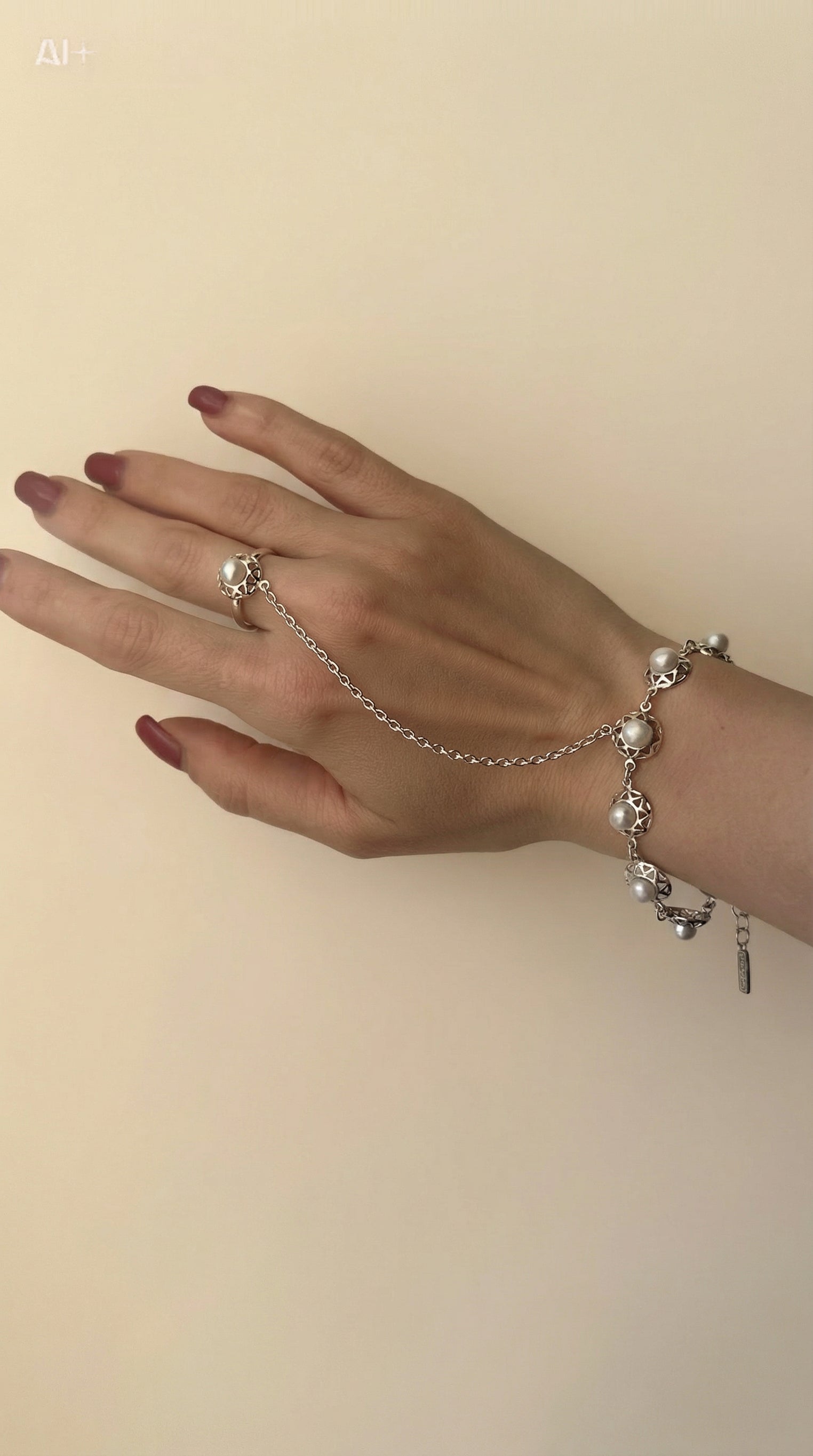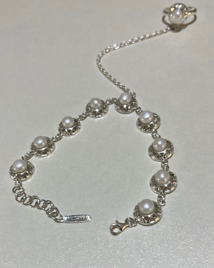 Sterling silver hand chain “Morocco” made of 925 sterling silver and cultured pearls