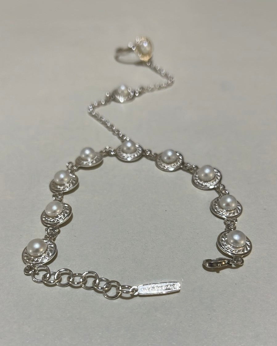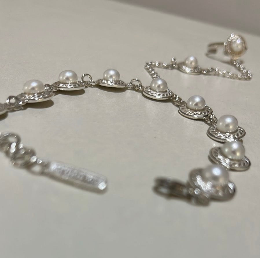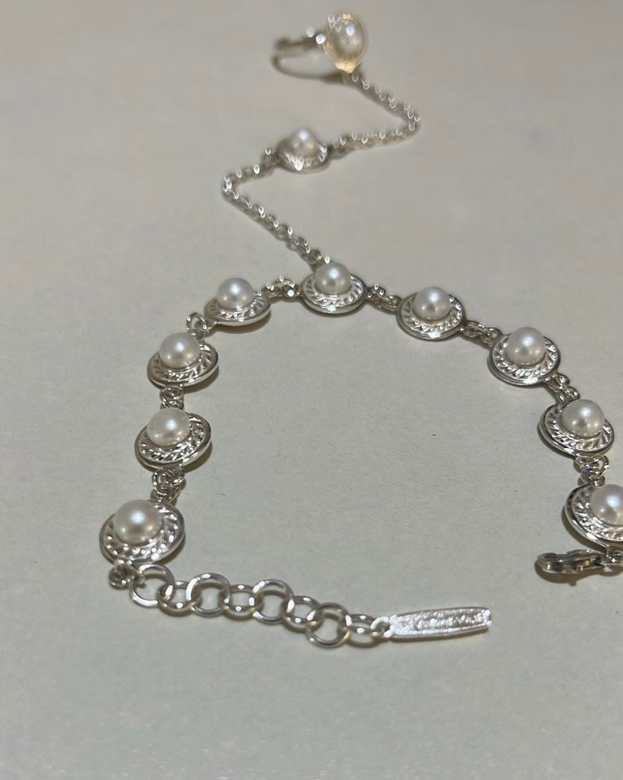 Sterling silver ring-chain bracelet “Eva” with pearls